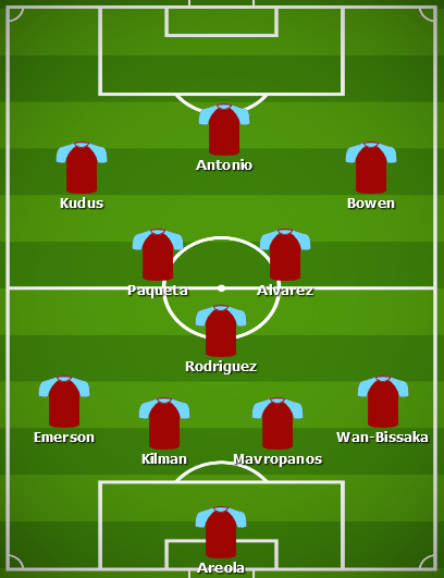 Would go with this team as well. Wasn't a fan of playing Bowen upfront last season, but think it's worth another try with a different style of football and a proper left sided attacker in Summerville. Will go 1-2, Bowen and Kudus getting the goals.