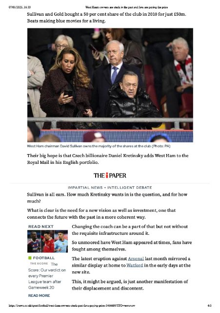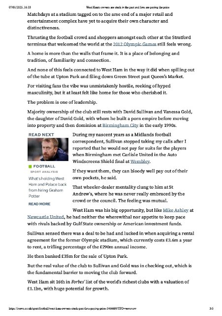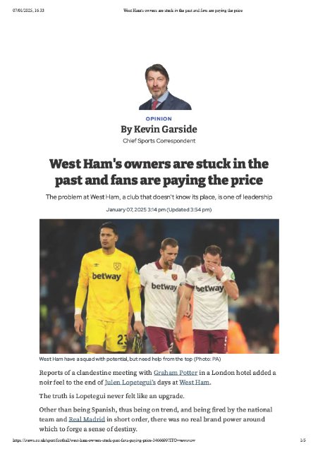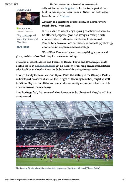Worth a read - West Ham Owners Stuck in the Past